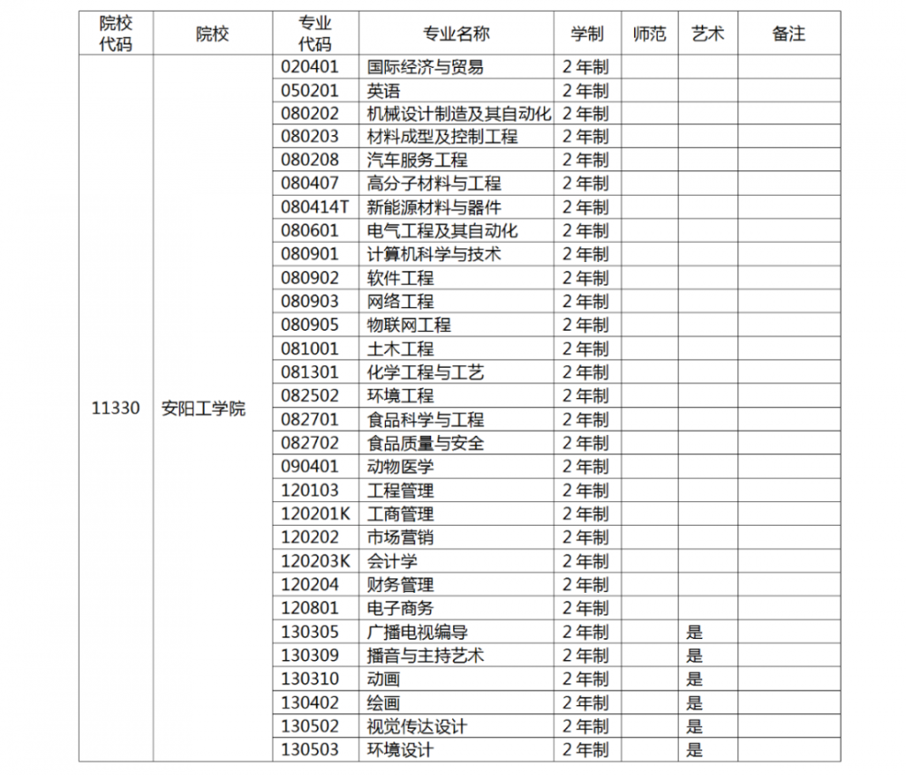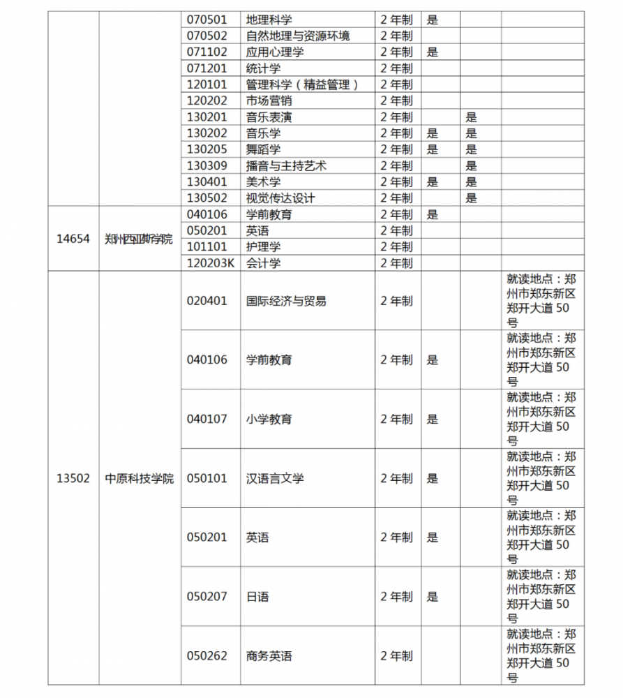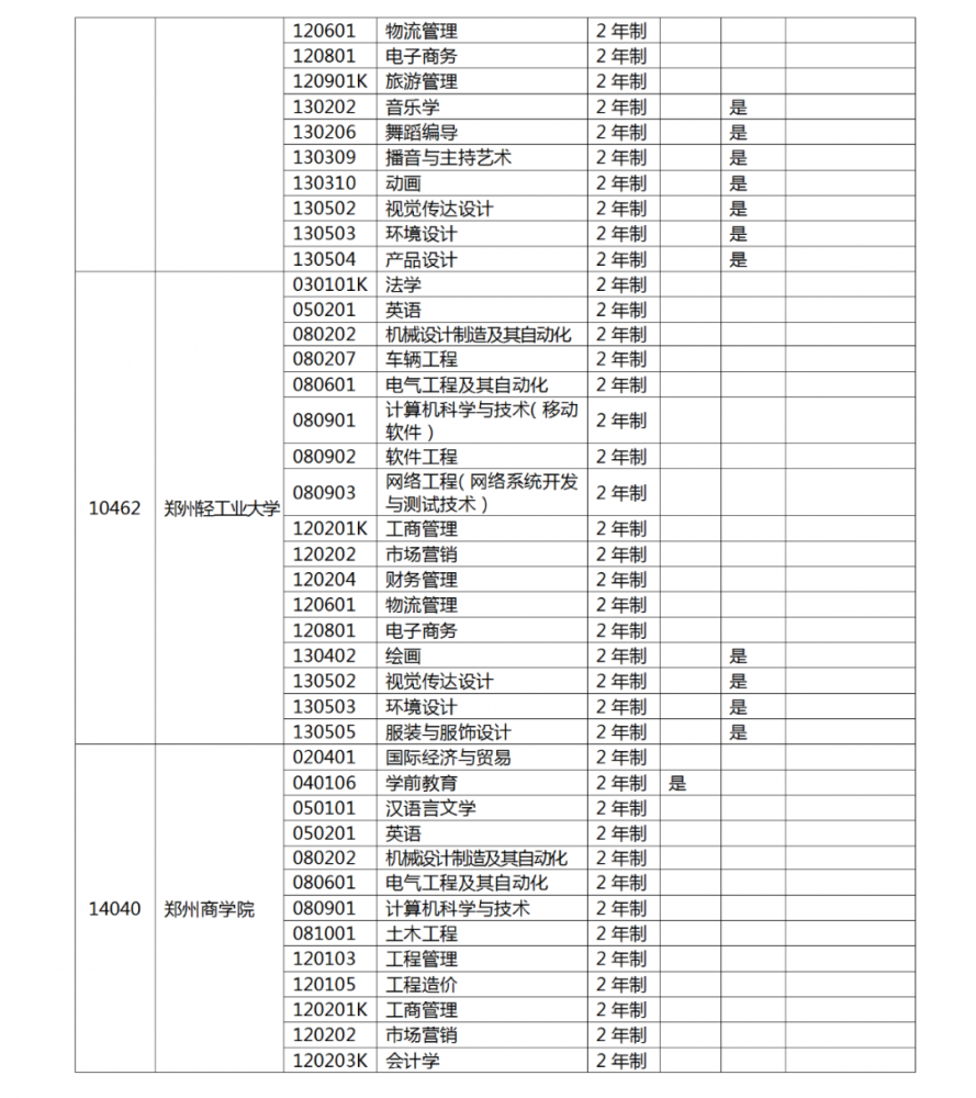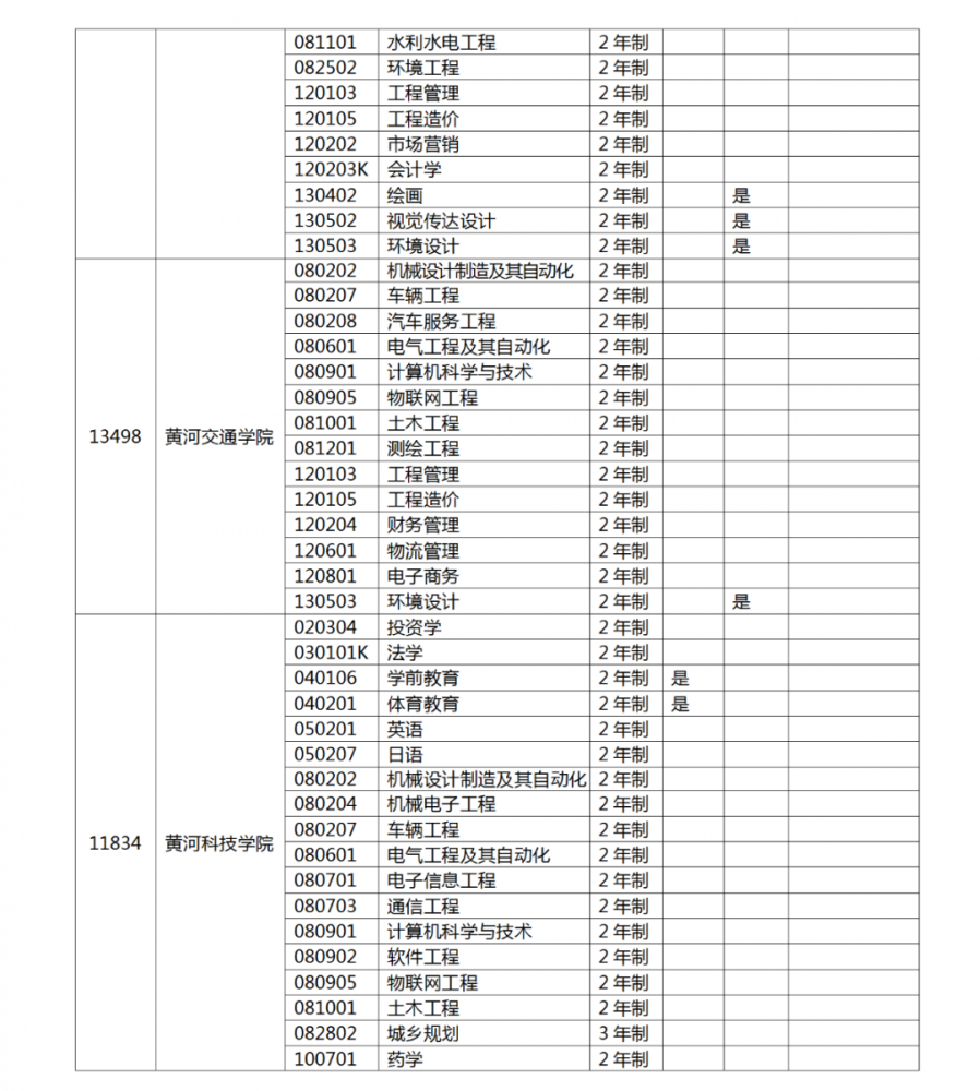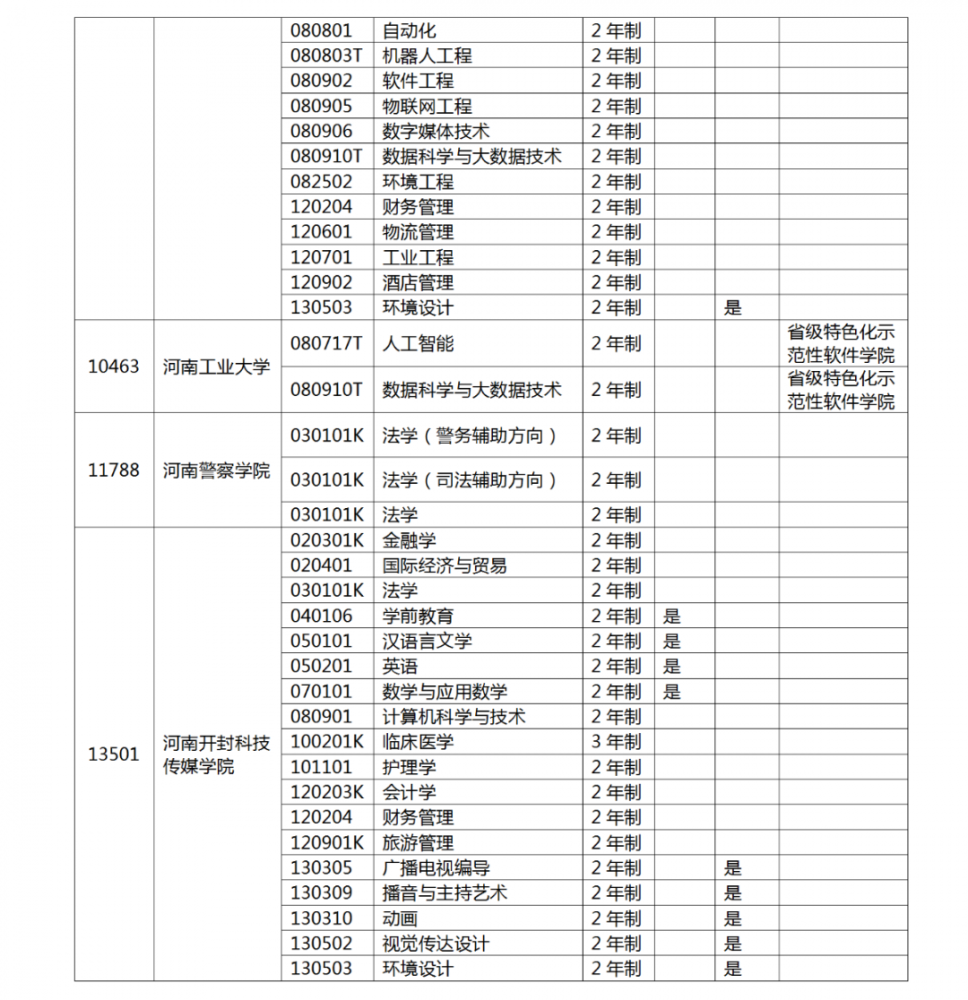 河南省2022年普通高职(专科)毕业生进入本科阶段学习招生学校及专业总表